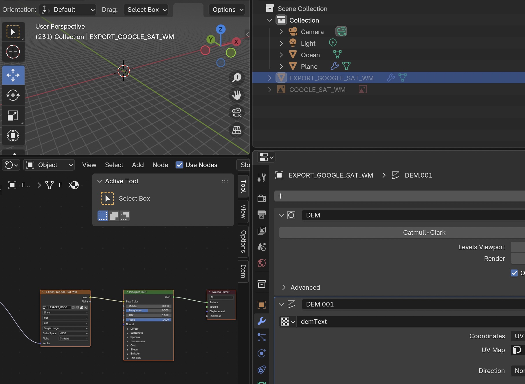 From start to finish of this workshop, I now feel confident navigating the Blender GIS plugin and exporting imagery from QGIS.